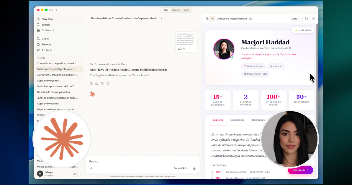 Un PDF estático ya no es suficiente para destacar. Aprende a transformar tu perfil profesional en un dashboard interactivo con animaciones, gráficos dinámicos y diseño premium, generado con Claude Artifacts, sin escribir código.