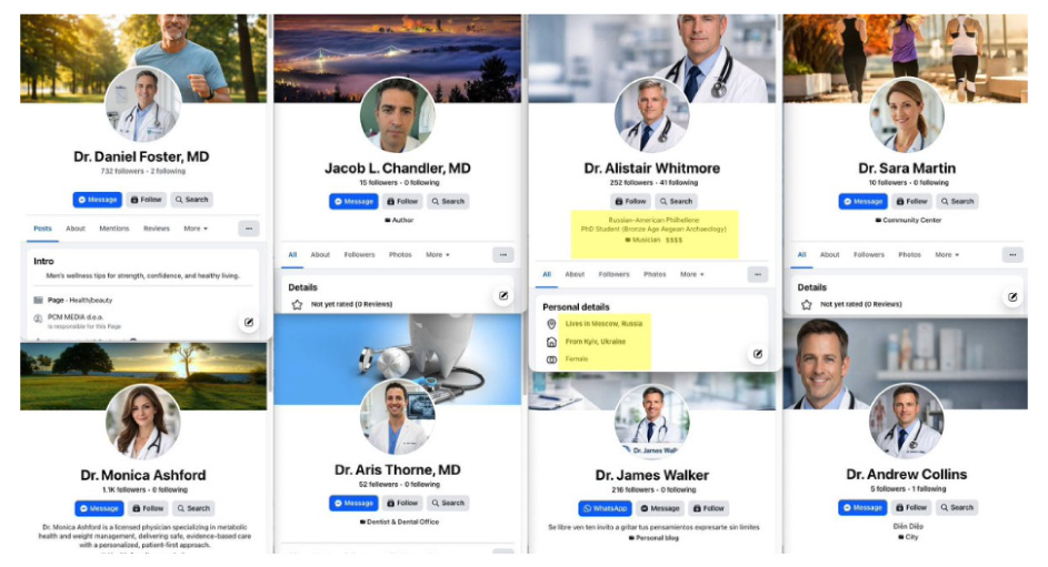 Antes del perfil del NYT, un post viral en X expuso que más de 800 perfiles falsos de “doctores” en Facebook corrían anuncios de Medvi. Nombres inventados, credenciales ficticias y perfiles armados para vender GLP-1 compuestos.