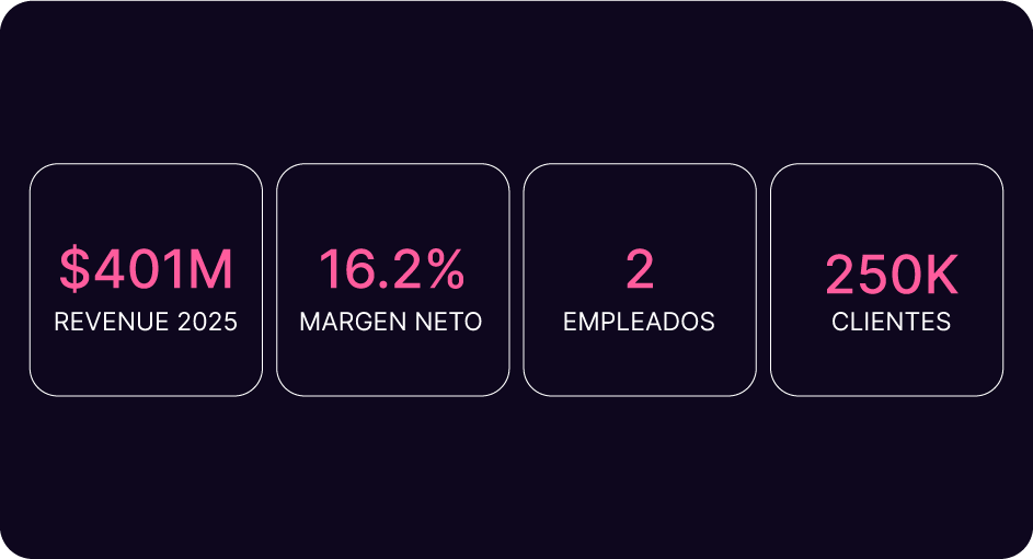Catorce meses después, la empresa factura $401 millones al año con un margen neto de 16.2%. Proyección para 2026: $1.8 mil millones. Con dos empleados, él y su hermano.