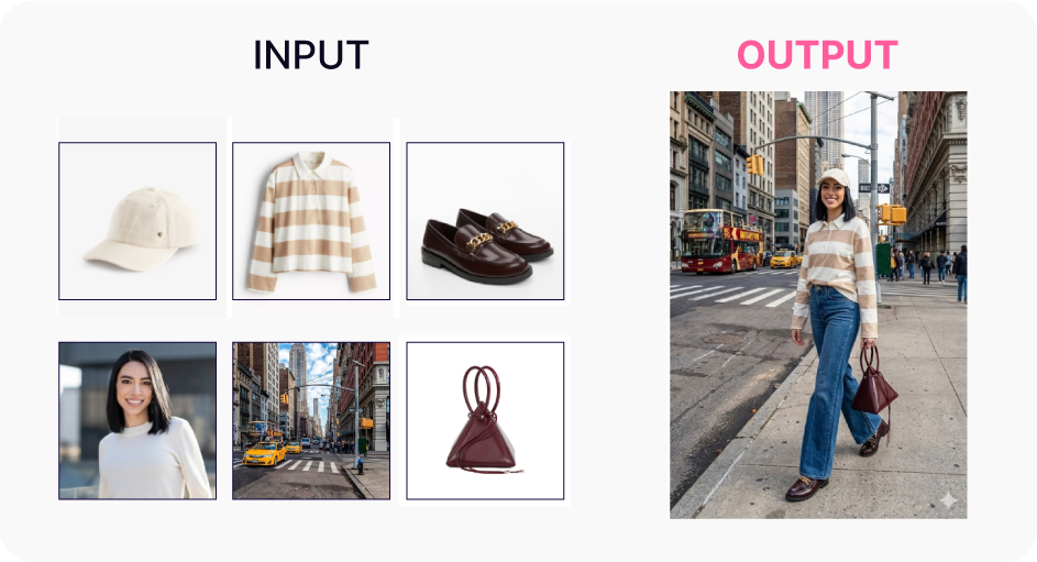 Sirve para pasar de referencias sueltas (Pinterest, screenshots, fotos del cliente) a un concepto visual unificado: campaña, portada, key visual de marca, etc.