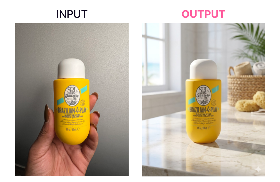 Esta es probablemente la función más rentable, pasar de una foto casera a algo que se ve como e-commerce premium.
