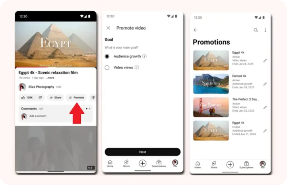 YouTube actualizó su Studio con funciones clave para creadores: ahora puedes promocionar tus videos directamente desde la app, subir thumbnails distintos por idioma y conectar tus publicaciones con Shorts para maximizar alcance.