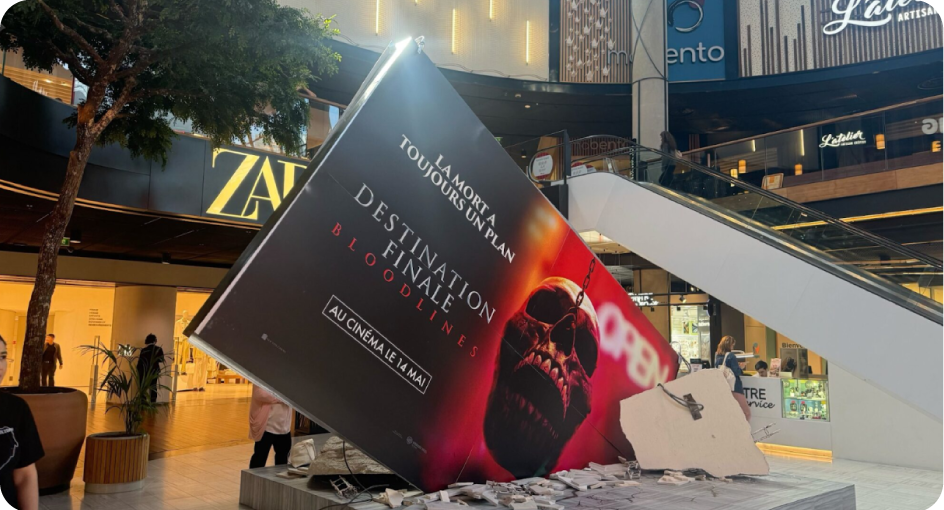 Para promocionar la nueva película de la saga, colocaron un cartel "enterrado" en el piso de un centro comercial en París.