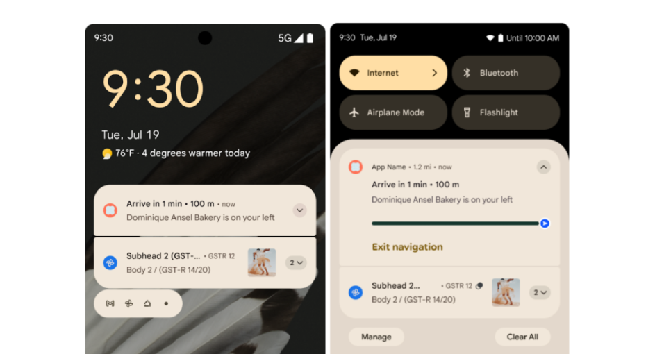 Ahora tendrás notificaciones en vivo, agrupadas por app, y las apps estarán obligadas a usar toda la pantalla (edge-to-edge).