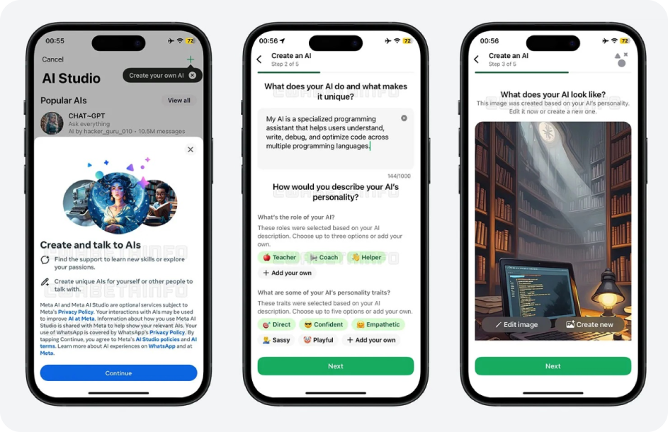 Tendrá usernames (como Telegram), AI Studio para crear tus propios asistentes, y ya apareció en el código.