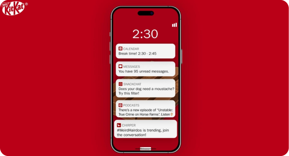 Kit Kat lo entendió con esta campaña: si reduces tú screen time y lo pruebas en Stories, te mandan chocolate a casa. Demasiado on brand para ellos.