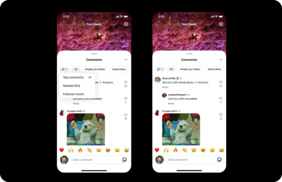 Puedes ver los mejores, los más recientes o filtrar según cuántos seguidores tiene quien comenta. Además, está probando un teleprompter integrado (primero en Edits).