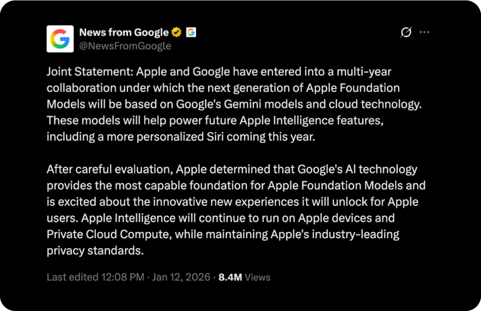 Apple está admitiendo, sin decirlo explícitamente, que llegó tarde a la carrera de modelos base. Y Google pasa de competir por features a convertirse en proveedor de inteligencia para terceros. Siri deja de ser un problema interno y se vuelve una apuesta estratégica compartida.