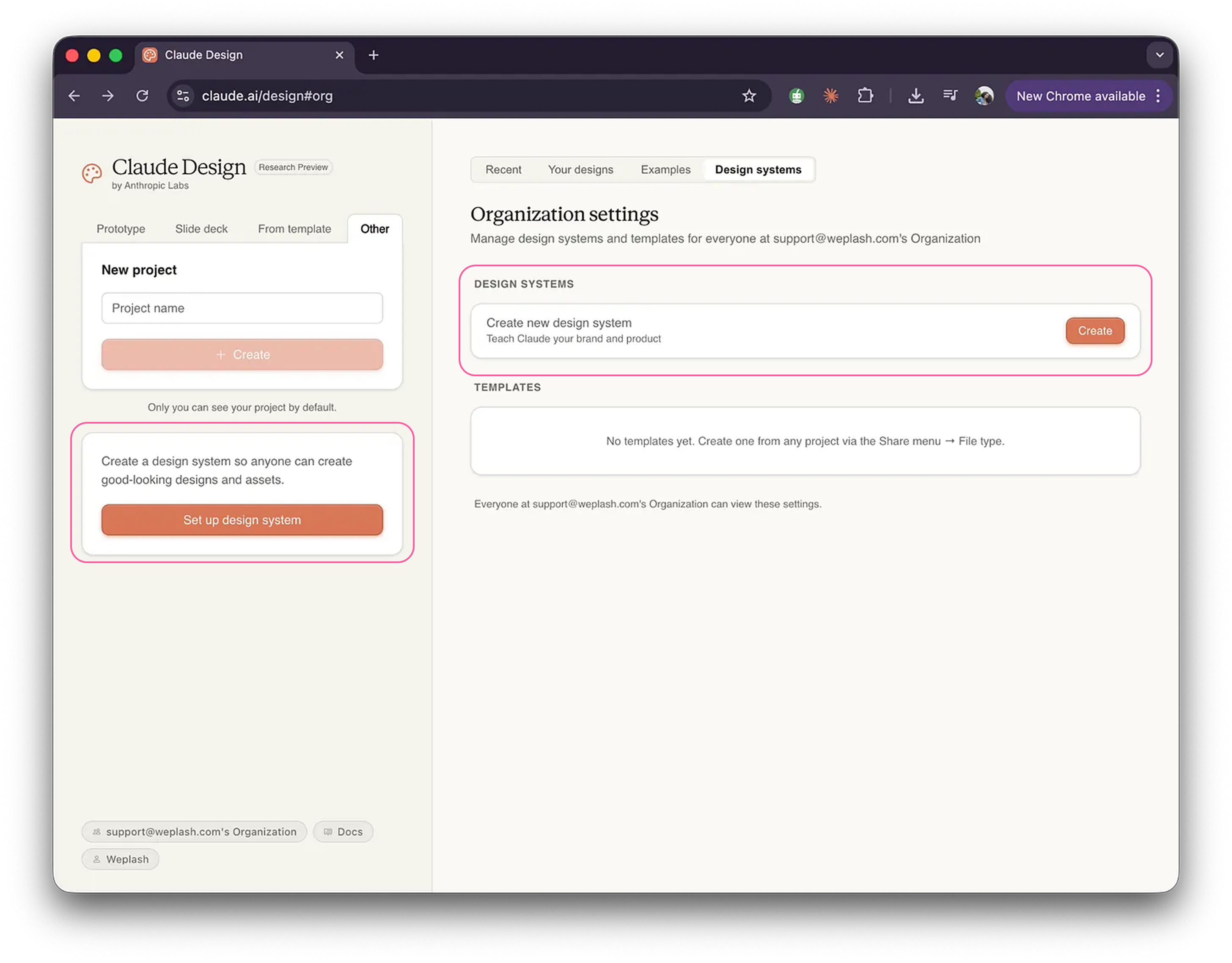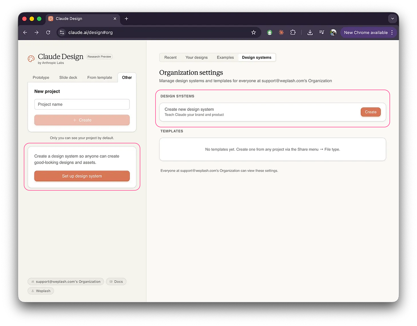 Más abajo verás un botón que dice Set up design system. Esa es la parte más potente de la herramienta y la cubrimos en la sección 3. Por ahora, ignóralo.