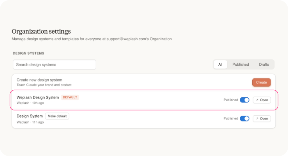 Una vez creado tu design system, este se activa por default y será la base de diseño de lo que le pidas a Claude.
