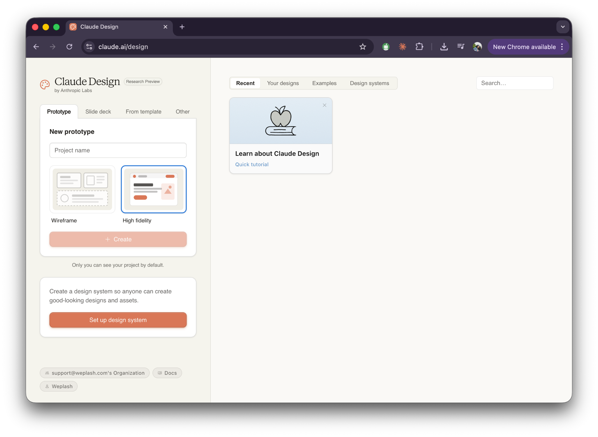 Vamos a crear un deck de 4 slides para Weplash. El objetivo es que, al terminar, la presentación parezca hecha por nuestro equipo de diseño, no por una IA genérica.