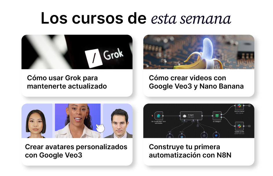 En la Academia encuentras cursos que no se quedan en teoría, son herramientas pensadas para ayudarte a crear, automatizar y comunicar mejor.