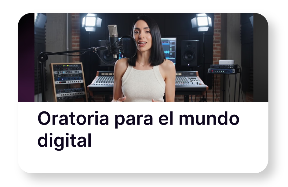 Incluye ejercicios prácticos para mejorar tu voz, postura y estructura de mensajes. Un curso imprescindible si quieres que tu comunicación digital tenga impacto real.