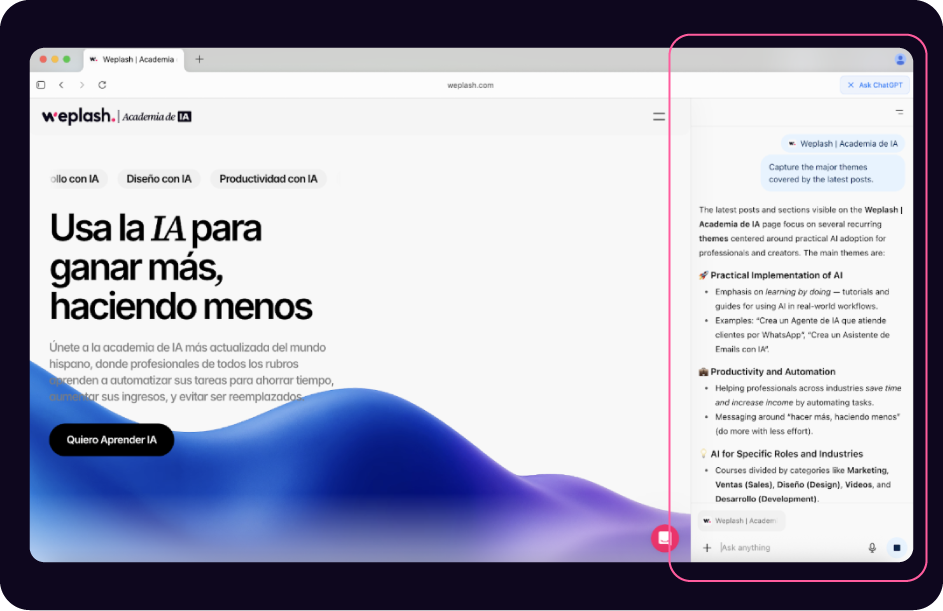 No es una app más de IA, es integrar la IA donde ya trabajas. Y sí, esto no es nuevo (Perplexity ya lo empujó con Comet), pero Atlas se vuelve realmente útil si ya usas ChatGPT en tus procesos; ahí es donde empieza a cambiar tu forma de trabajar.
