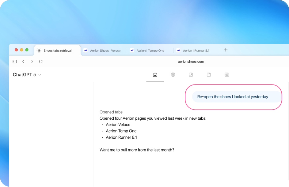 Además, puedes activar la memoria de navegación (opt-in) para que recuerde lo útil y lo recupere cuando lo pidas.