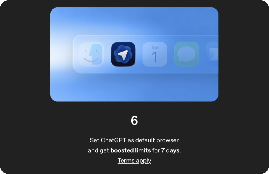 Como extra temporal, si lo estableces como navegador por defecto, tendrás límites más altos de uso de ChatGPT dentro de Atlas por un tiempo limitado.