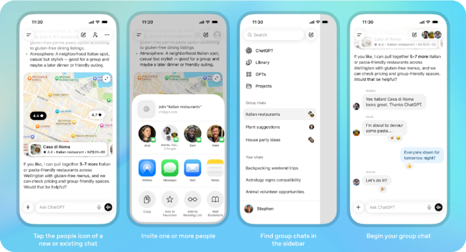 OpenAI activó la opción de crear grupos donde varias personas pueden conversar con ChatGPT al mismo tiempo.