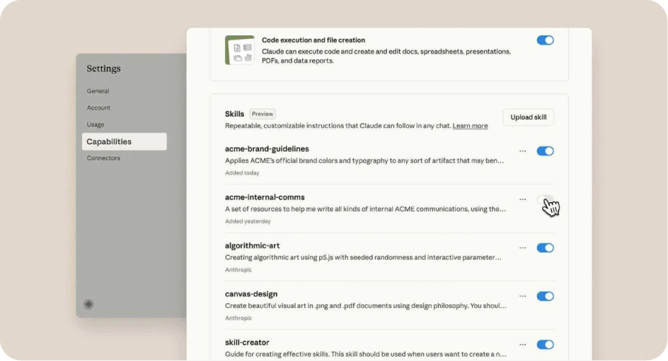 Anthropic lanzó Skills, una función que permite enseñar a Claude tus procesos empresariales en formato de carpetas con instrucciones, scripts y referencias.