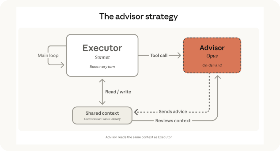 Anthropic lanzó algo que parece discreto, pero reconfigura el flujo de trabajo de los agentes. Se llama Advisor Strategy. Un modelo chico ejecuta, cuando se complica, consulta a uno grande y sigue. Todo ocurre sin que lo veas.