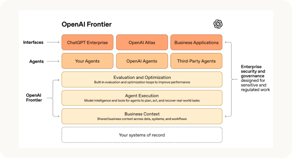 OpenAI lanzó Frontier, una plataforma empresarial para crear y administrar “AI-coworkers”. Estos agentes pueden usar software real como Salesforce, Workday o bases de datos internas, con los mismos permisos y controles que un empleado humano.’