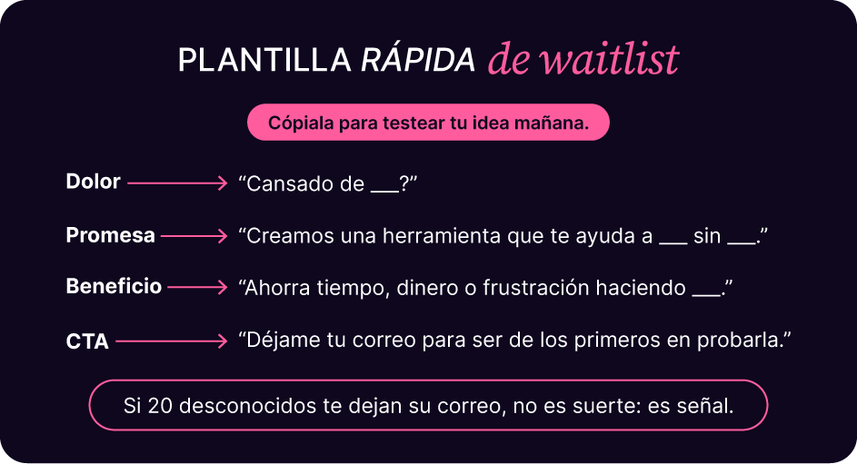 El siguiente paso no es construir durante meses, sino validar en días. Una página de espera, un prototipo mínimo o un simple formulario bastan para ver si tu idea conecta.