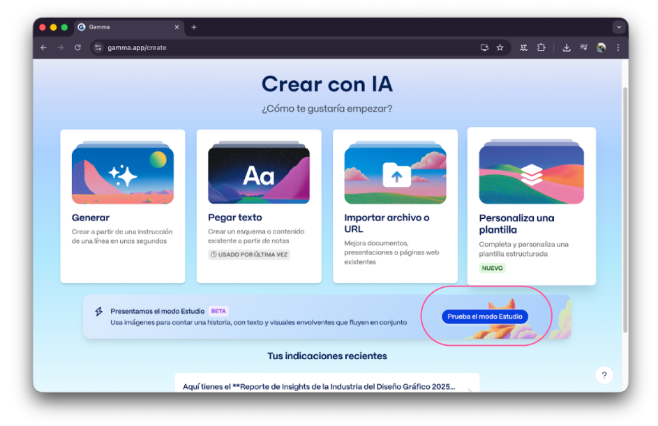 Gamma acaba de potenciar su Studio Mode, una forma de crear decks completos con ayuda de IA, donde el foco ya no es solo el texto, sino también el diseño desde el inicio.
