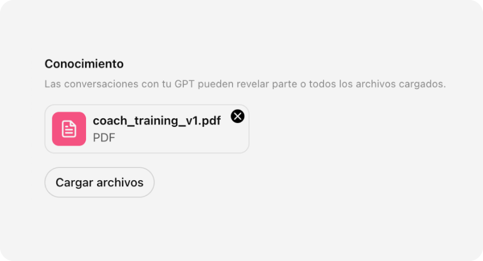 Sube el documento que creaste en el paso 2. Puedes añadir otros archivos (ej. tus OKRs, tu checklist personal).