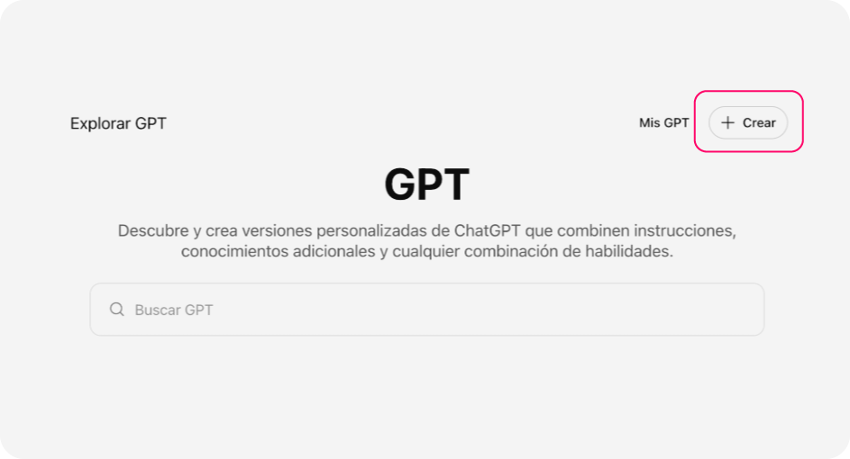 Ahora que tienes el documento listo, es momento de llevarlo al Builder de ChatGPT (Explore GPTs → Create).