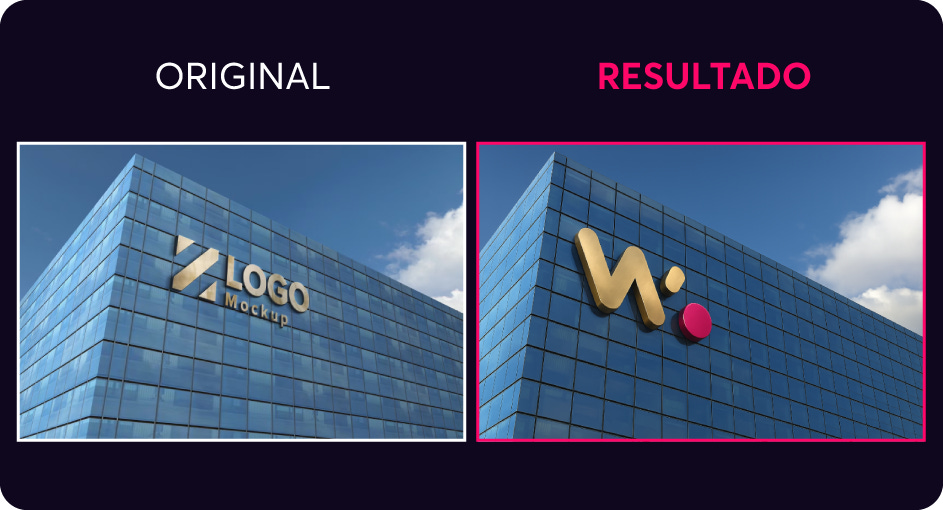 Prompt + imagen: Inserta el logo moderno de una agencia creativa (usa el archivo proporcionado) en la fachada de un edificio corporativo. El logo debe verse como un letrero metálico 3D realista, montado sobre los paneles de vidrio, reflejando ligeramente la luz del sol. Mantén la perspectiva, las proporciones y las sombras consistentes con el edificio original.