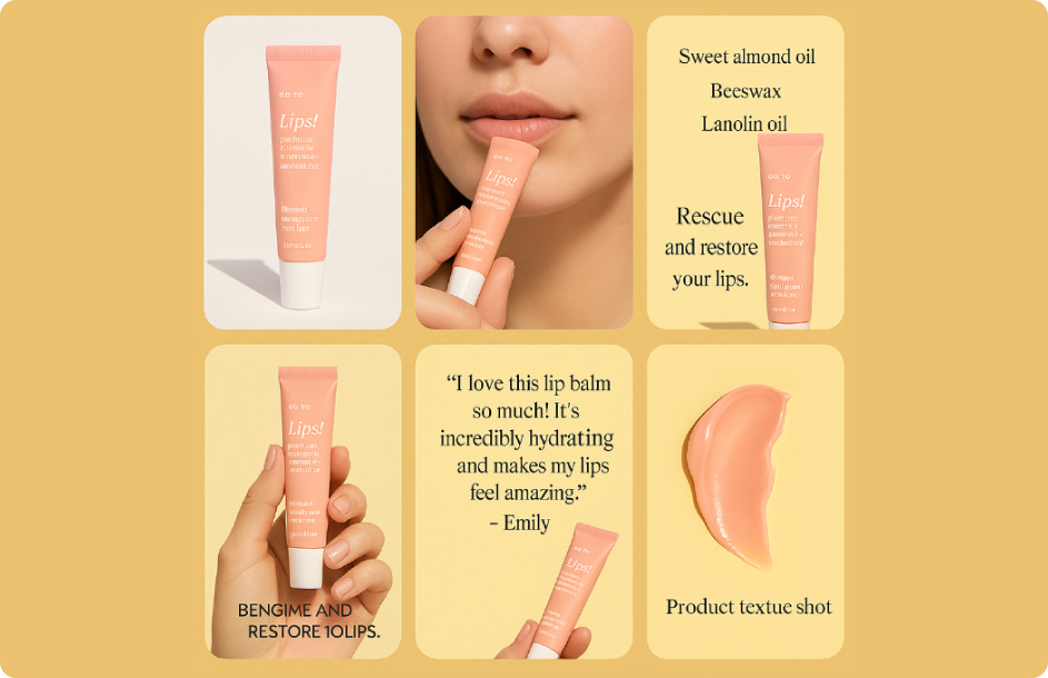 Este tipo de set visual te permite construir una narrativa completa alrededor de un solo producto, mostrando no solo cómo luce, sino cómo se usa, qué beneficios tiene y cómo se siente.