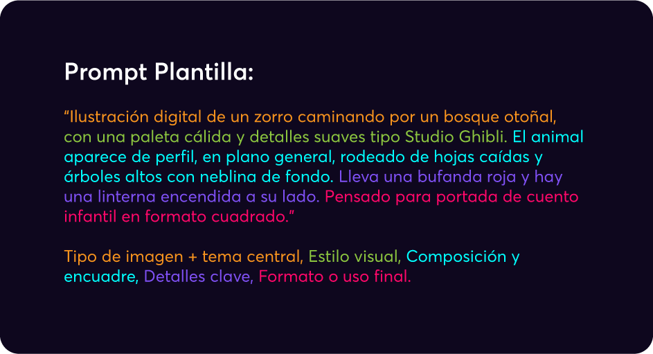 Esta estructura reduce errores, mejora los resultados y te permite trabajar más rápido, sobre todo cuando necesitas explorar estilos o escenarios distintos con una misma base creativa.