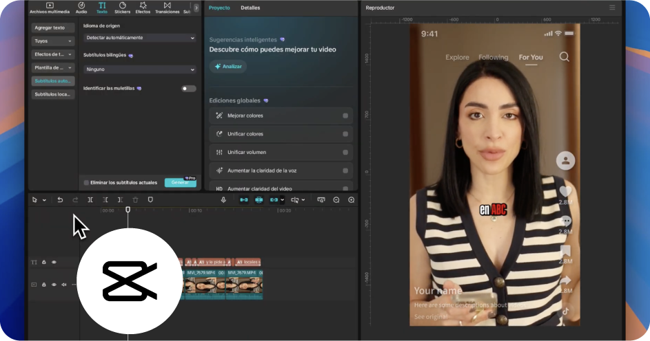 Flujos de edición en minutos: mejora de calidad, cortes automáticos, subtítulos precisos y efectos con look profesional listos para publicar.