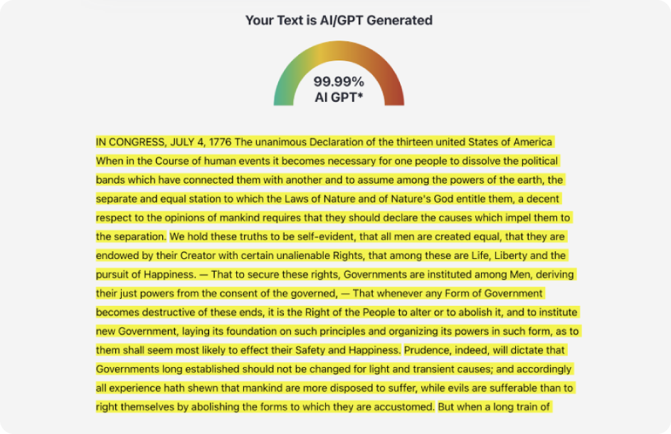 Un detector de AI marcó la Declaración de Independencia como 99.99% generada por inteligencia artificial.