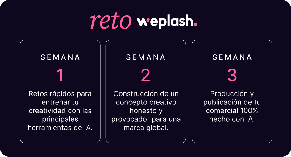 El 1 de octubre arranca el Reto Viral de IA de Weplash. Durante 3 semanas vas a aprender, crear y publicar. Así funciona: