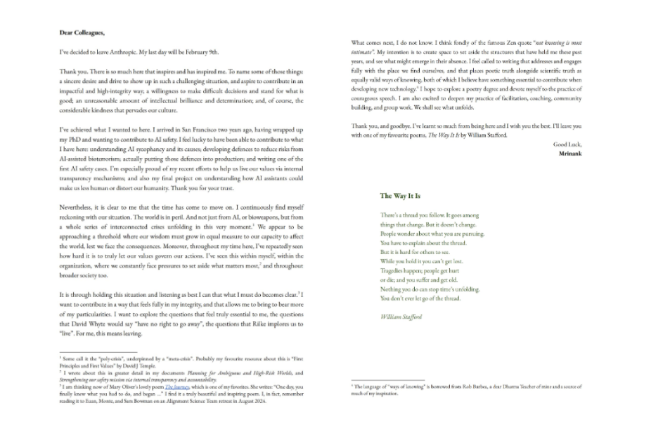Un investigador Anthropic renuncia.