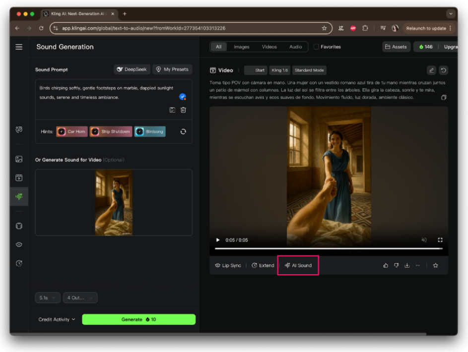 Ahora también puedes generarlos con herramientas de AI como ElevenLabs o directamente desde Kling, que incluye una opción de generación de sonido integrada.