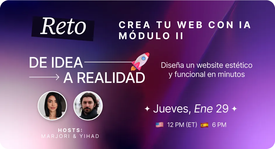 Y esta semana seguimos con el reto de web. Ya empezó, pero todavía te puedes unir porque las clases quedan grabadas. La segunda clase es este jueves.