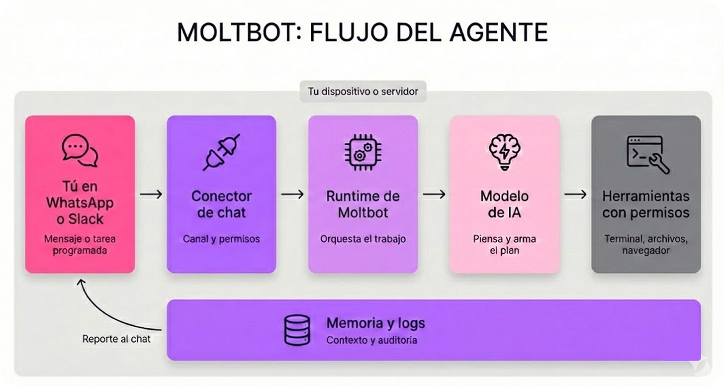 Moltbot hace visible un cambio: herramientas que recuerdan, se quedan disponibles y pueden ejecutar trabajo.