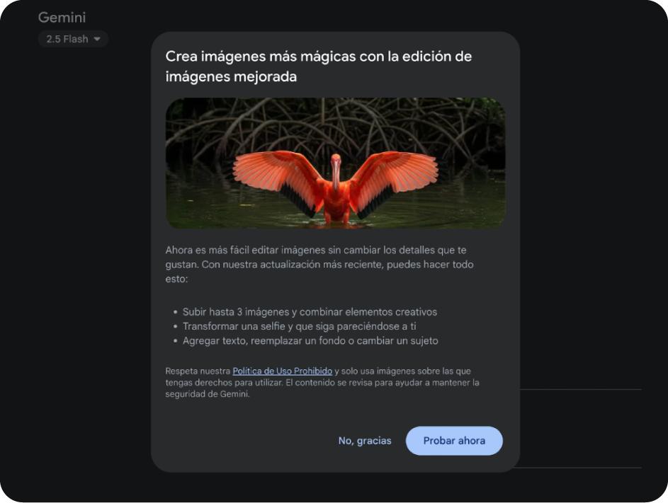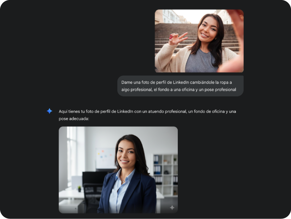 Con Gemini 2.5 Flash Image (apodado por la comunidad “nano banana”) eso cambió. Su diferencia está en la consistencia, porque los resultados mantienen identidad y estilo incluso en ediciones más complejas. Y lo mejor es que ya está disponible gratis en la app de Gemini.