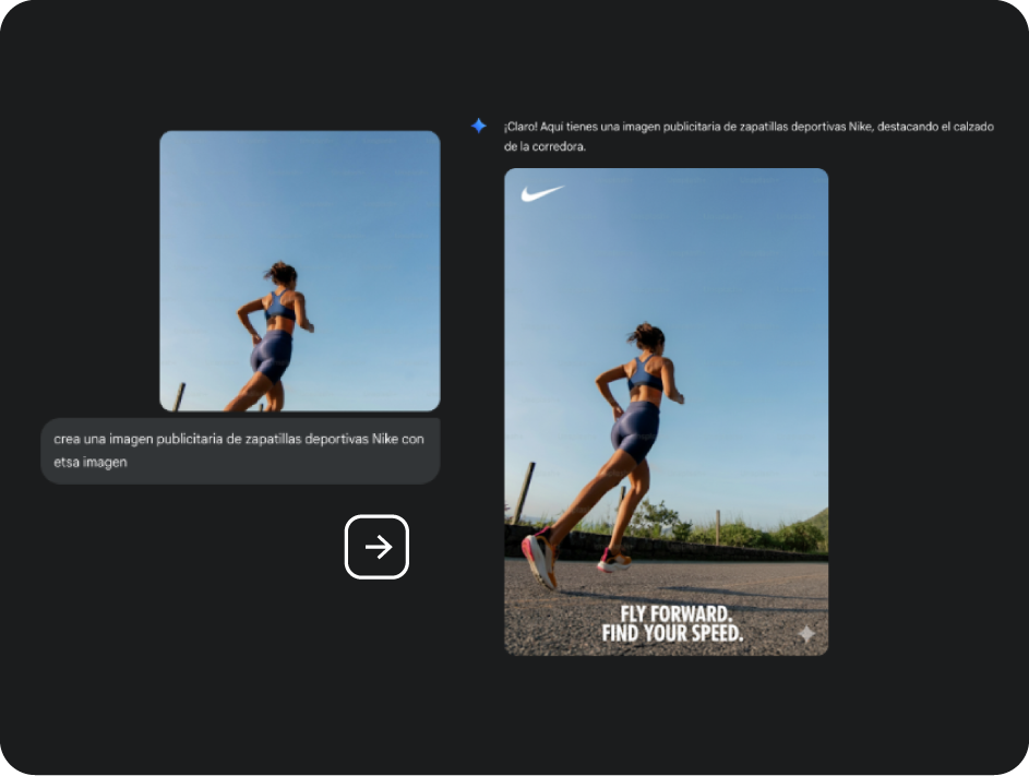 También puedes usarlo para crear anuncios. A partir de una foto de producto, generas visuales listos para campañas con un estilo tan pulido como el de marcas globales. Iteras versiones en minutos y reduces la dependencia de equipos de diseño.