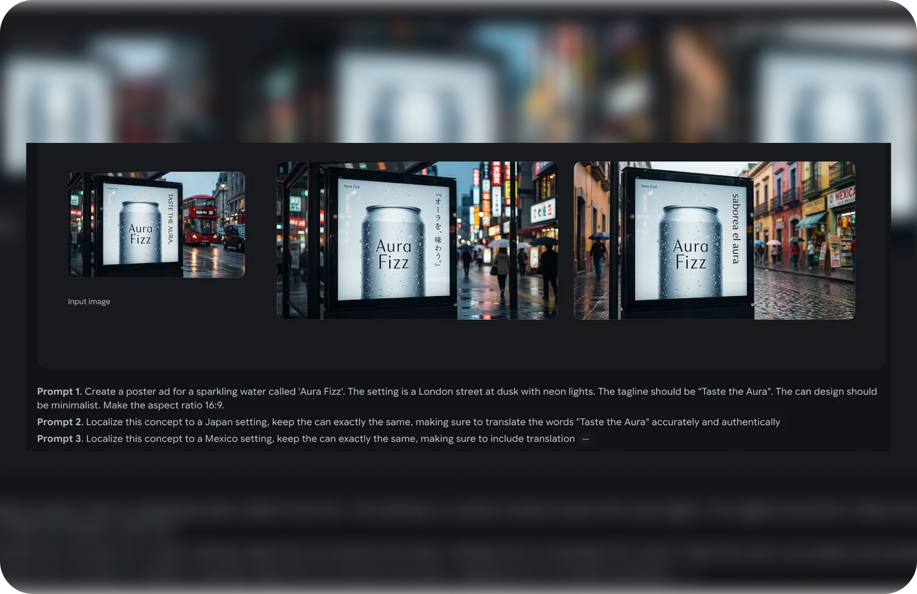 Puedes generar el concepto, el look & feel, los mockups, el texto dentro de los visuales, la versión localizada para cada país. Todo sin cambiar de herramienta.