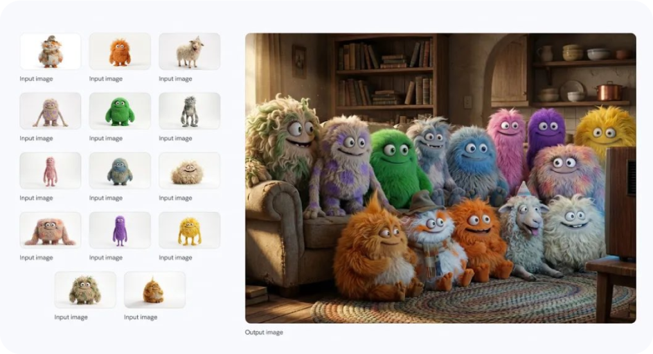 Puedes dar referencias, logotipos, productos, personajes, escenas o elementos aislados, y el modelo los reconstruye en una composición coherente, sin perder rasgos ni estilo.