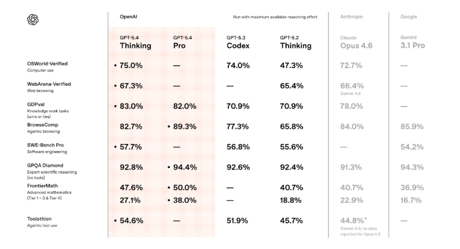 OpenAI lanzó GPT-5.4 en ChatGPT como “GPT-5.4 Thinking”, y también en la API y Codex. Está pensado para trabajo profesional con mejor razonamiento, mejor código y mejor desempeño usando herramientas (documentos, presentaciones, hojas de cálculo, navegador, etc.). Para quien necesita exprimir todo en tareas pesadas, también salió GPT-5.4 Pro.