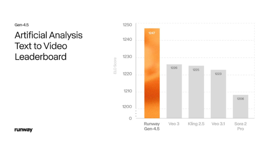 Lanzaron Gen‑4.5, su nuevo modelo de video que ya tomó el primer lugar en el leaderboard de Artificial Analysis, superando a Google Veo 3 y a OpenAI Sora 2.