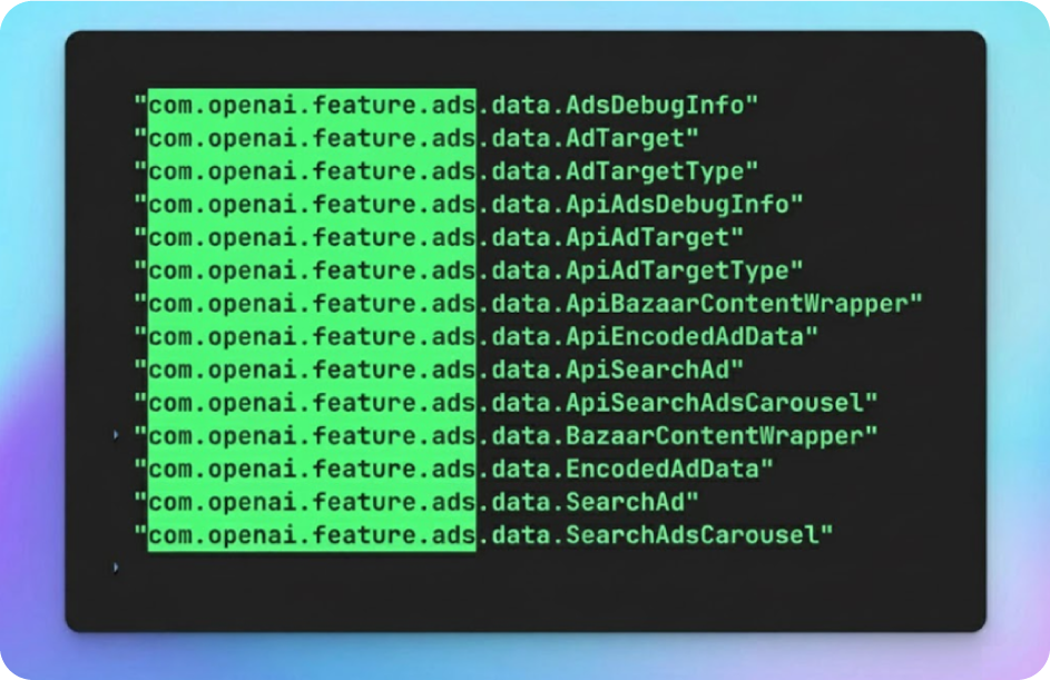 Empezaron a probar anuncios dentro de ChatGPT, según un análisis del APK beta en Android que reveló funciones para ads tipo búsqueda, carruseles y “bazaar content”.