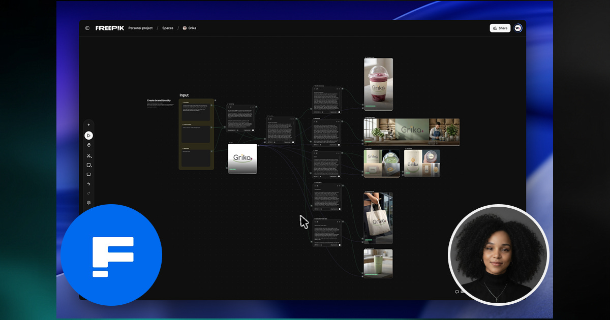 Lo que antes tomaba semanas y un equipo de diseño, ahora lo haces en horas. Aprende a crear una identidad visual completa (logo, mockups, fotografías y animaciones) usando IA conversacional y Freepik Spaces.