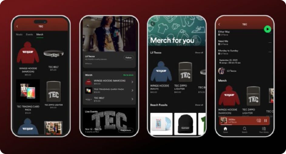 Y Spotify lo confirma. Ahora tienen un espacio en la app lleno de merch personalizado.
