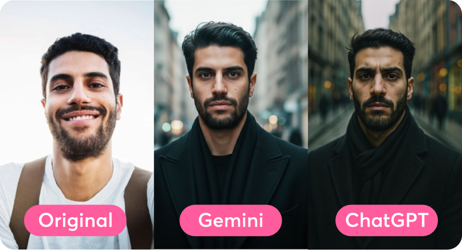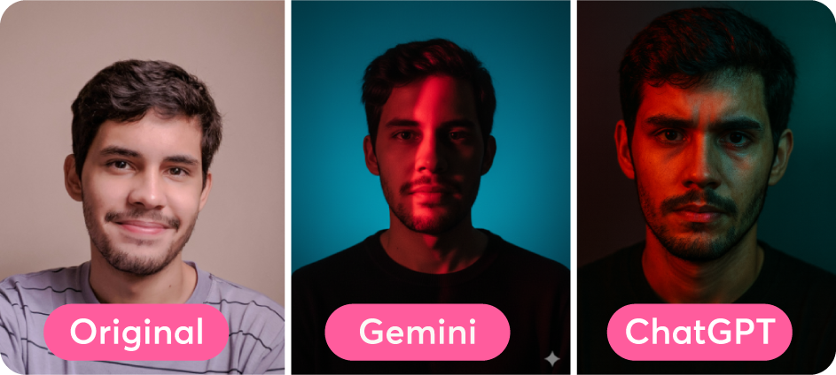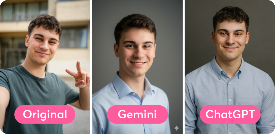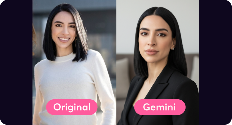 🧠 Tip Pro: La mayoría de estos headshots están hechos con Gemini, porque hoy es la herramienta que mejor mantiene la integridad del rostro y el cabello. Pero no es la única opción: también puedes probar con ChatGPT, MidJourney o cualquier generador de imágenes que prefieras. Lo importante es ajustar bien el prompt y mantener el mismo sujeto en cada variación.