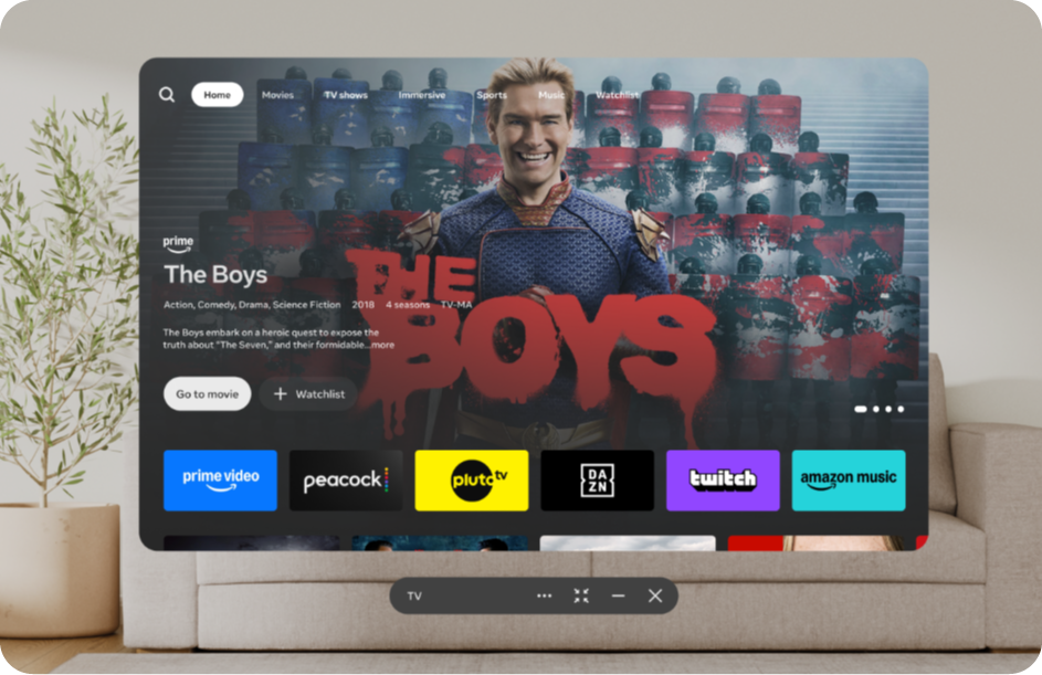 Incluye soporte para Dolby Atmos y, más adelante, Dolby Vision. Además, algunas películas y series tendrán “efectos inmersivos” exclusivos que expanden la experiencia alrededor de ti en VR.