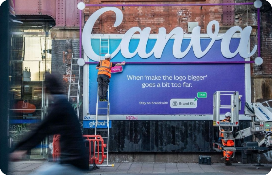 La nueva campaña de Canva en Londres convirtió la zona de Waterloo Station en un carrusel de verdades incómodas del diseño.